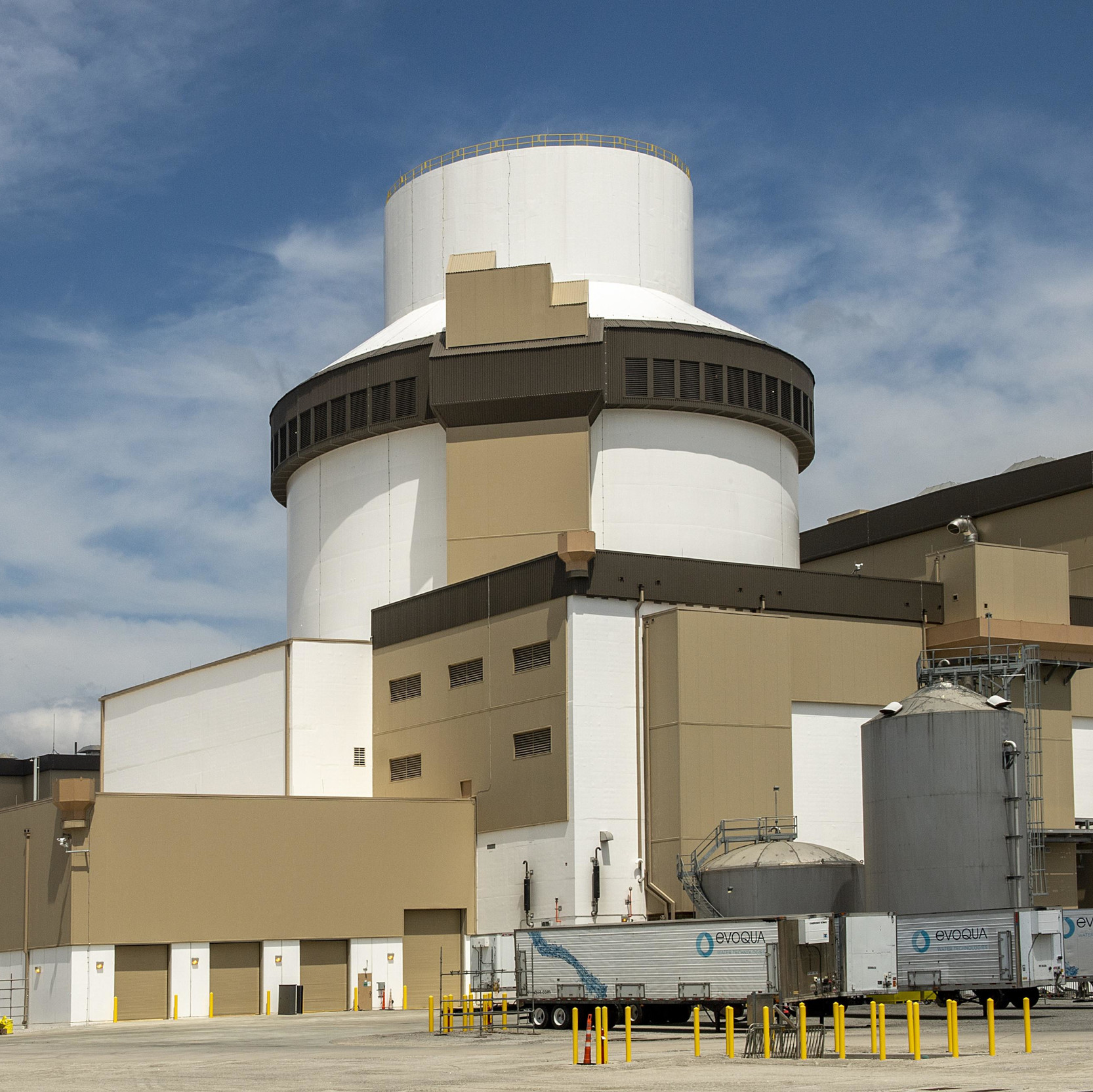 The steel-and-concrete containment structure features a double-shell design with an outer shield building that protects against external events. The modular construction approach ensures consistent quality and reduced construction timelines.